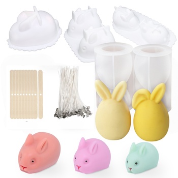 3D şanslı Bunny mum kalıp tavşan silikon kalıpları DIY el sanatları aromaterapi zanaat alçı yapma hediye paskalya dekorasyonu